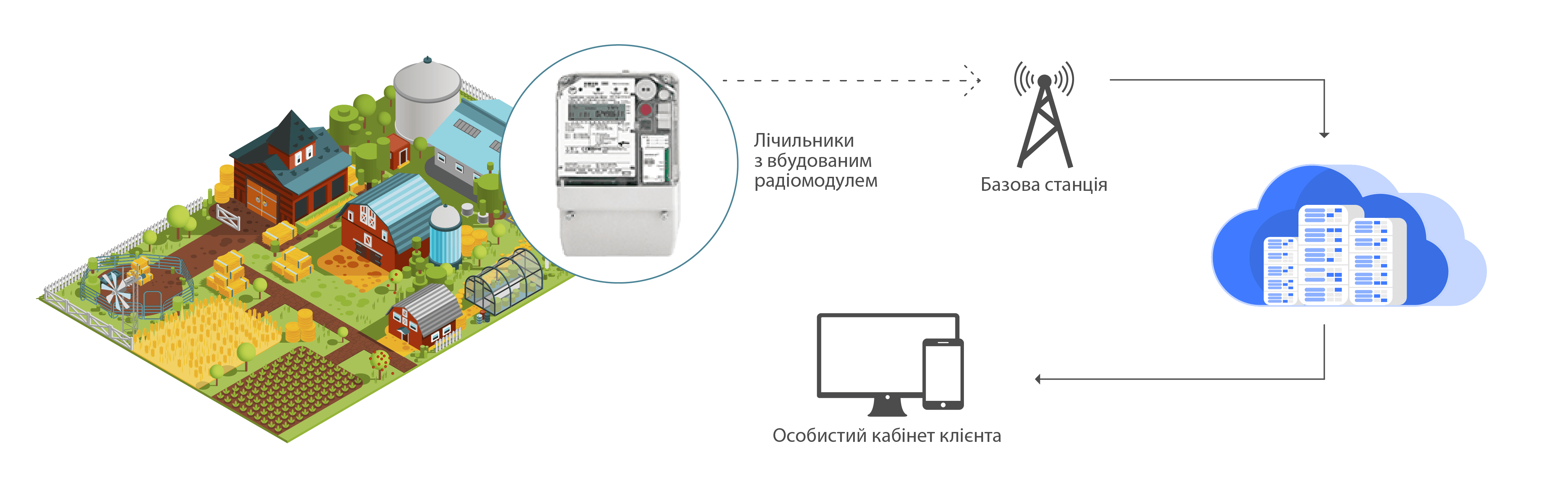 В залежності від кількості гаражів, чи господарств в кооперативі, географії їх розташування, профілю місцевості, та інших чинників, ми запропонуємо Вам вибір лічильників, та механізмів передачі даних від них у керуючий центр, що найбільш підходить для Вашого варіанту